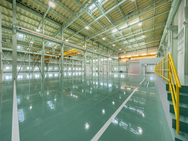 基本設計においては工場棟のホイストの揺れなどを事務所棟に伝達しないようエキスパンションで構造分離を行いました。