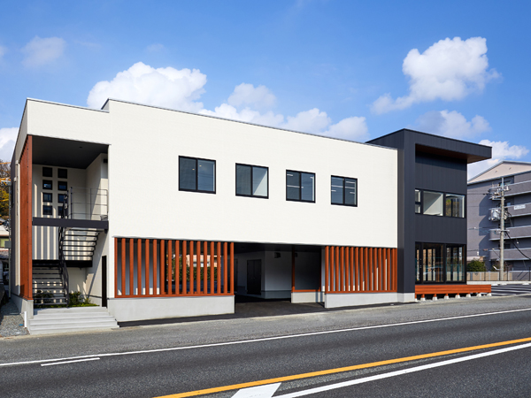 Hal DentalArtは下関市勝谷新町の国道2号線沿いに建つ木造2階建ての歯科技工所です。