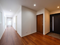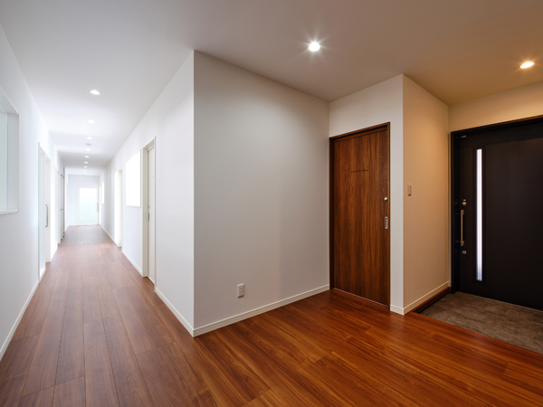 3つのDifference in heightに木格子、薄い庇、リブパネルという、細く魅せるを意識した素材・設計値で計画し、精密かつ繊細な歯科技工の業務風景を表現しました。この施設は1階が駐車エリアと休憩エリア、2階が歯科技工エリアで構成されています。
