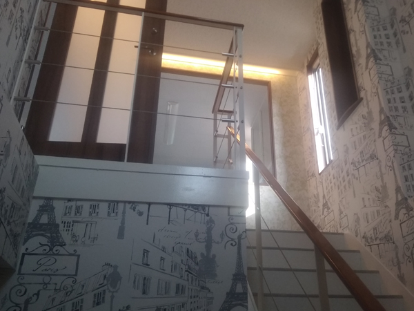 階段手摺は船舶を模倣してワイヤーを用いて細工をしてあります。