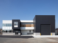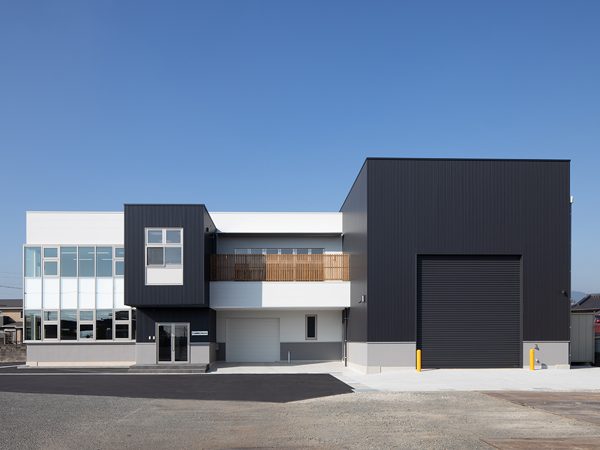 住吉工業 株式会社様とシンプルで機能的な事務所を心がけ事務所ゾーン⇔整備工場ゾーンが外部からでも明確にわかるよう設計しました。