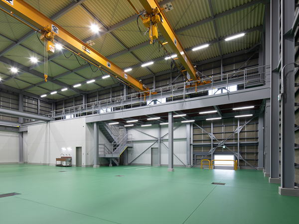 基本設計においては工場⇔事務所の動線計画、高潮対策、ホイストの立体交差による搬入搬出業務の短縮を盛り込みました。