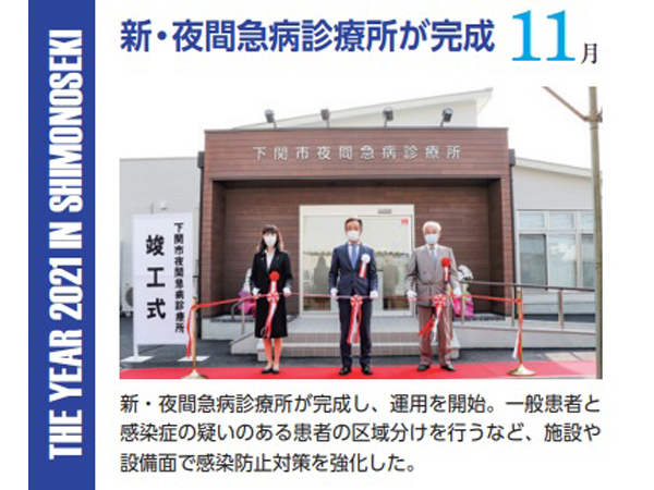 「新・夜間急病診療所建て替え」は下関市の感染防止対策の強化として「市報しものせき」“2021下関この一年”にも取り上げられました。
